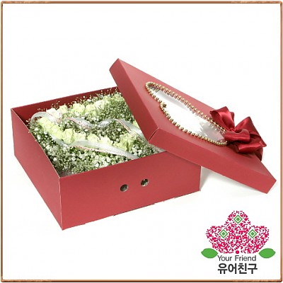 규격화된 상자안에 장미꽃과 계절꽃 등을 사용하여 만들어진 꽃상자입니다.